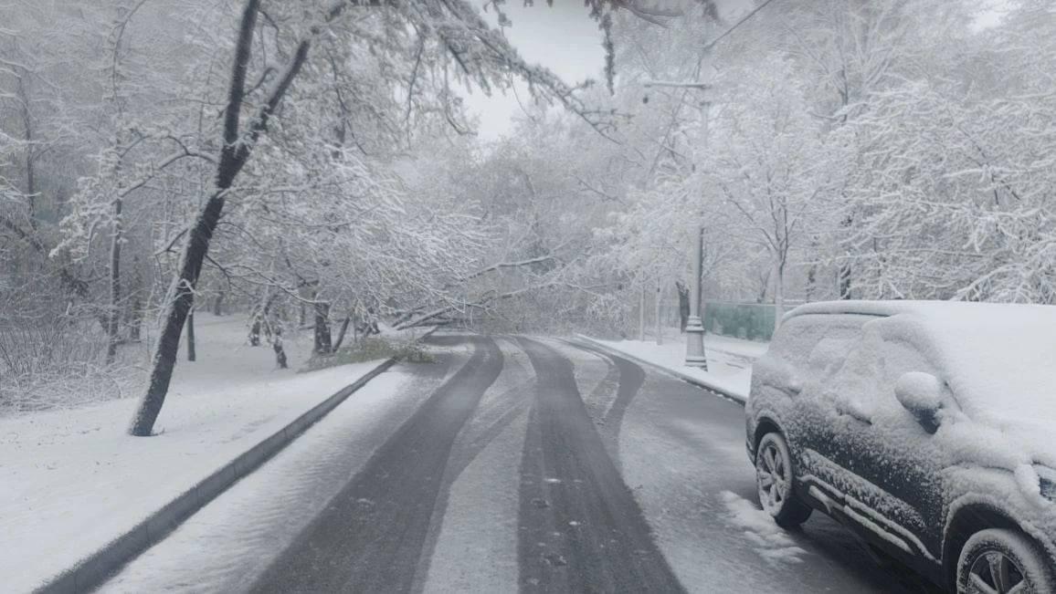 В ночь на 27 апреля в столице выпало около пяти сантиметров снега. Из-за непогоды падают деревья, задерживаются электрички и трамваи, произошли отключения электричества.