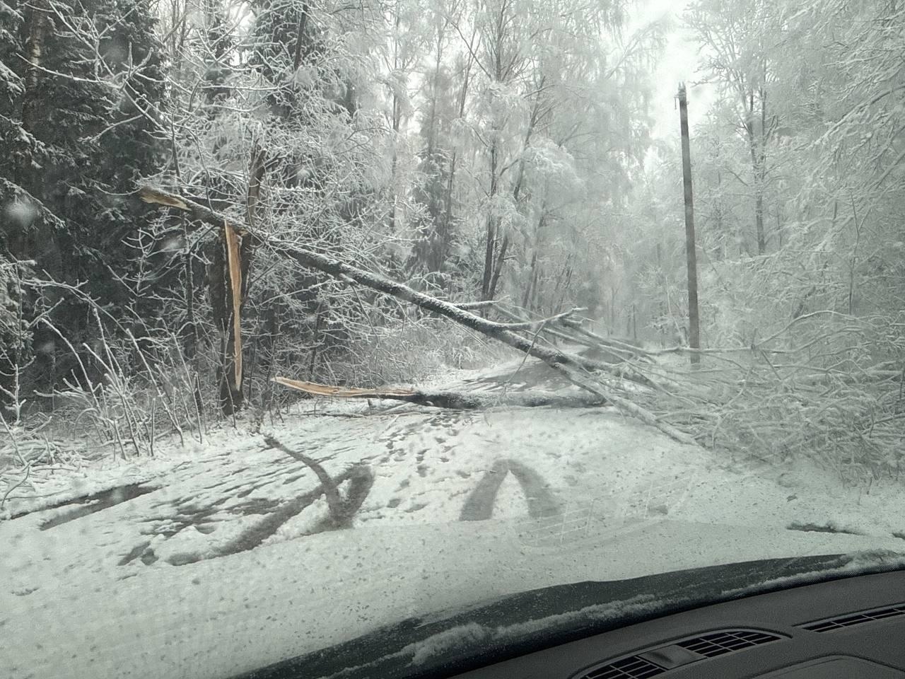 Выезд из СНТ Каховка в Королеве перекрыт упавшим деревом