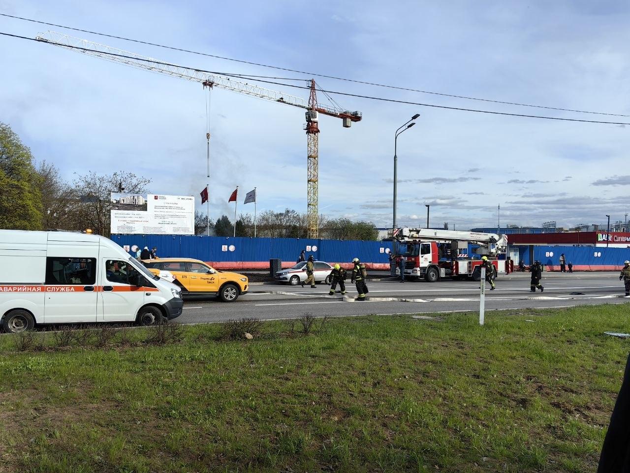 Строительная площадка, где произошло возгорание, окружена экстренными службами