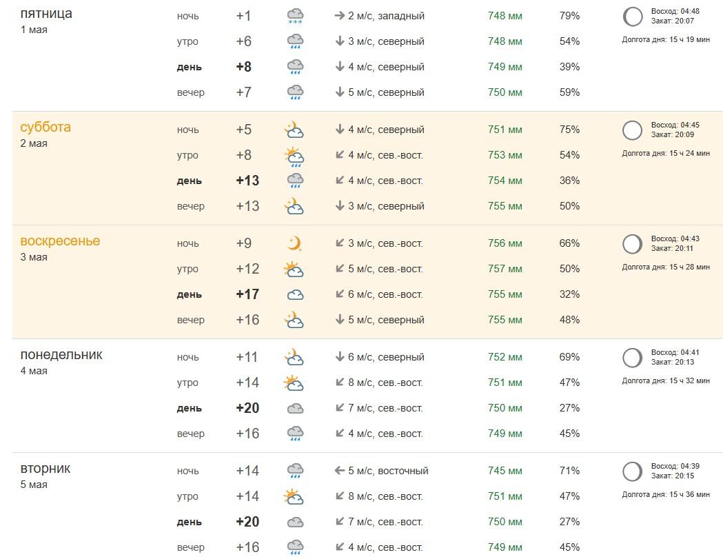 Холодная погода сохранится до конца рабочей недели. За трое суток в Москве выпадет месячная норма осадков. С 1 мая начнется потепление, столбики термометров могут подниматься до +20 °C, но дожди продолжатся.
